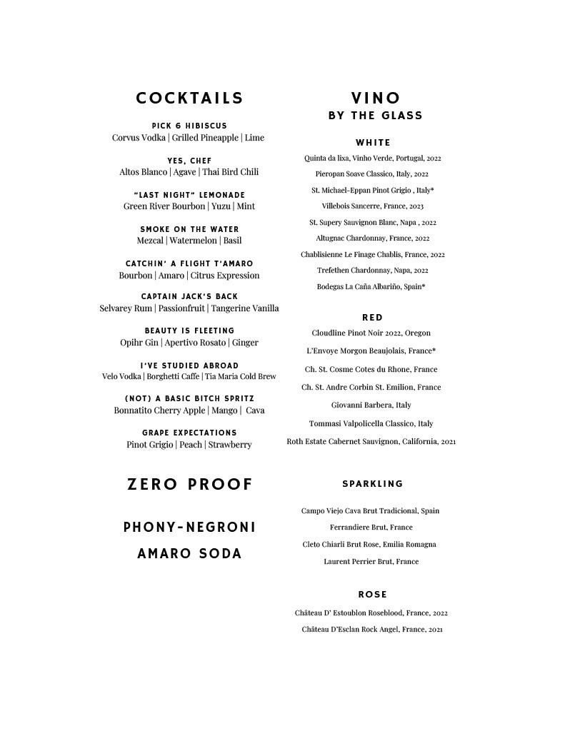 General manager Jake Fallon is also a Fox alum. The team at Le Mari collaborated on a list of mainly old world wines, plus seasonal cocktails such as “Last Night” Lemonade (Green River bourbon, yuzu, mint) and Pick 6 Hibiscus (Corvus vodka, grilled pineapple, lime).